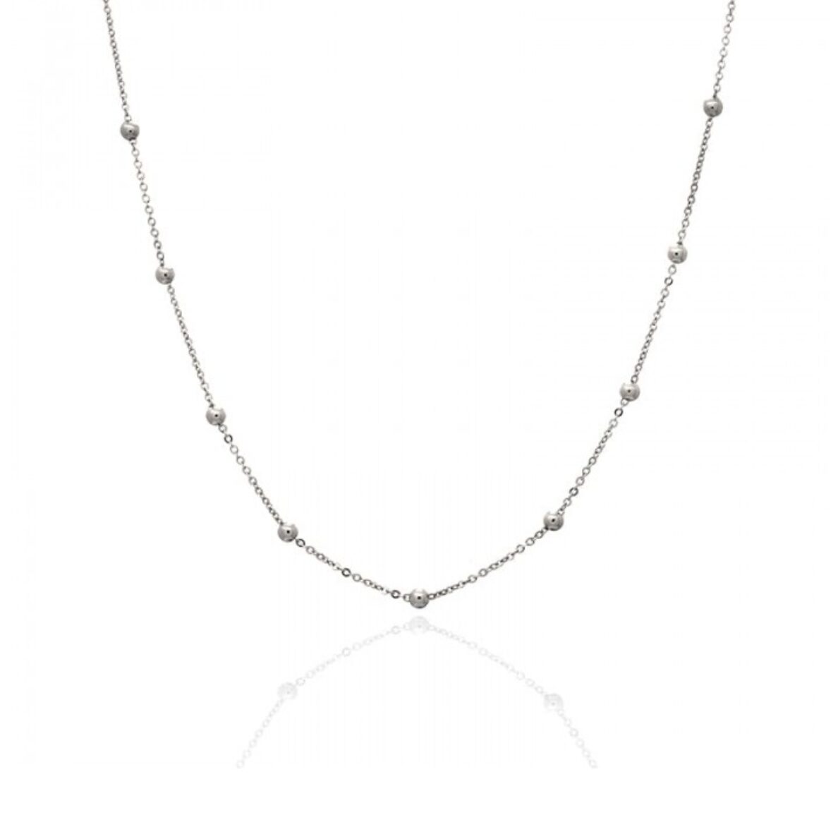 Cadena Plata de ley bolas de 45 cm de largo. La puedes acompañar con un colgante o sin colgante.