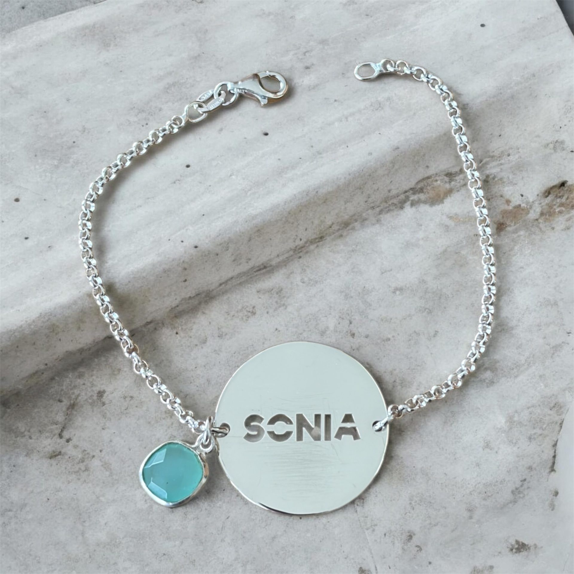 Pulsera plata redonda personalizada